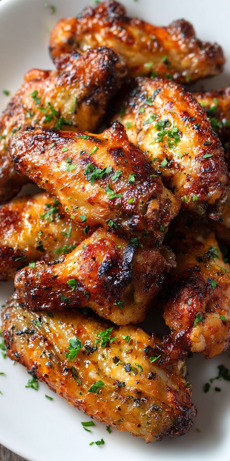 These wings turn out crispy on the outside and juicy inside without deep frying.