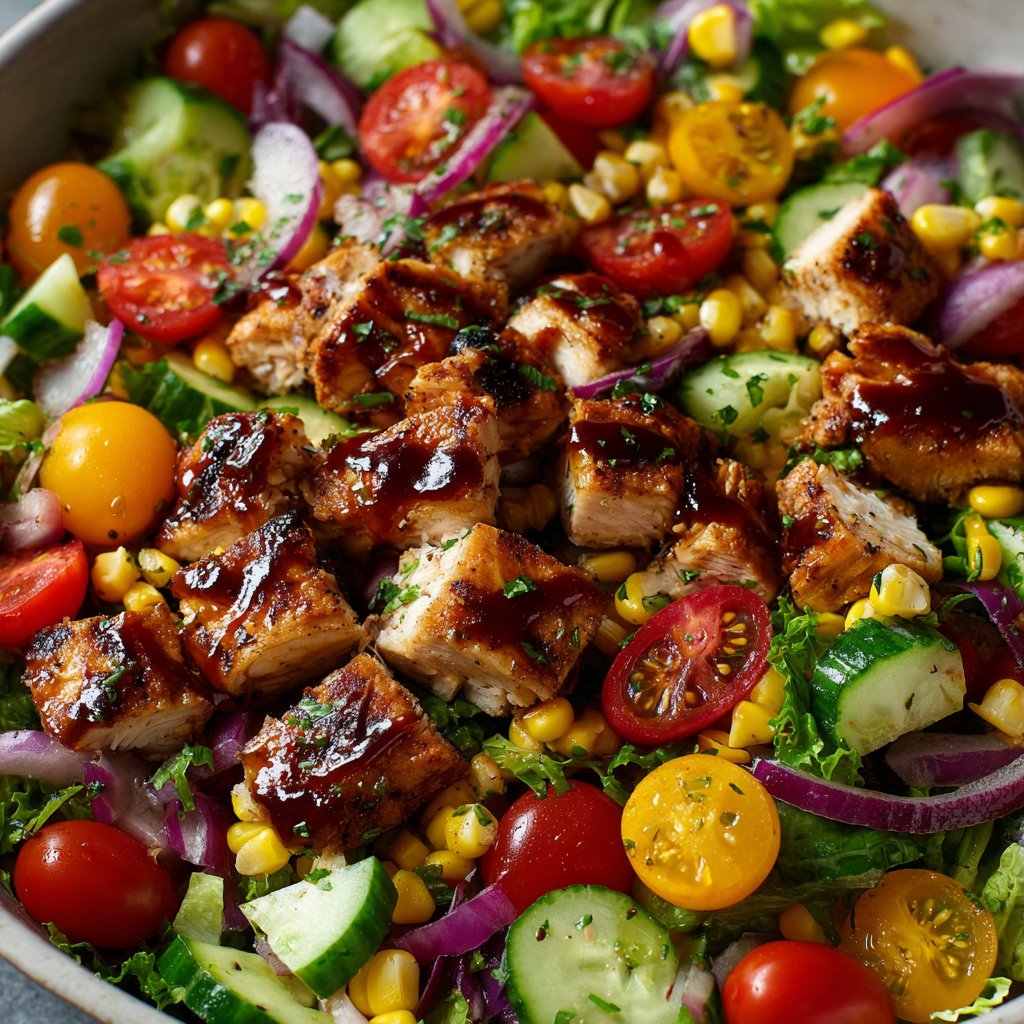 The smoky BBQ chicken pairs perfectly with crisp, fresh salad ingredients.