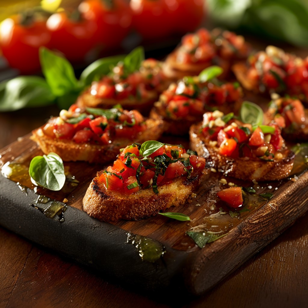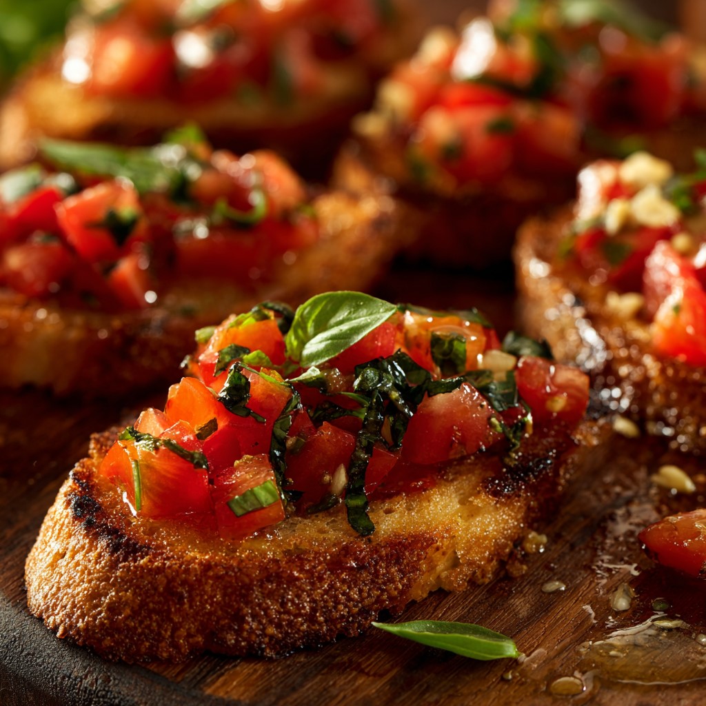 Crispy toasted bread, ripe tomatoes, fresh basil, and garlic come together in this classic Italian appetizer that’s light, refreshing, and full of flavor.
