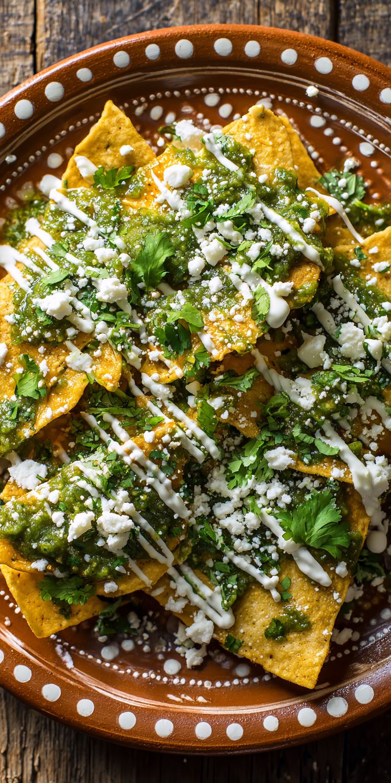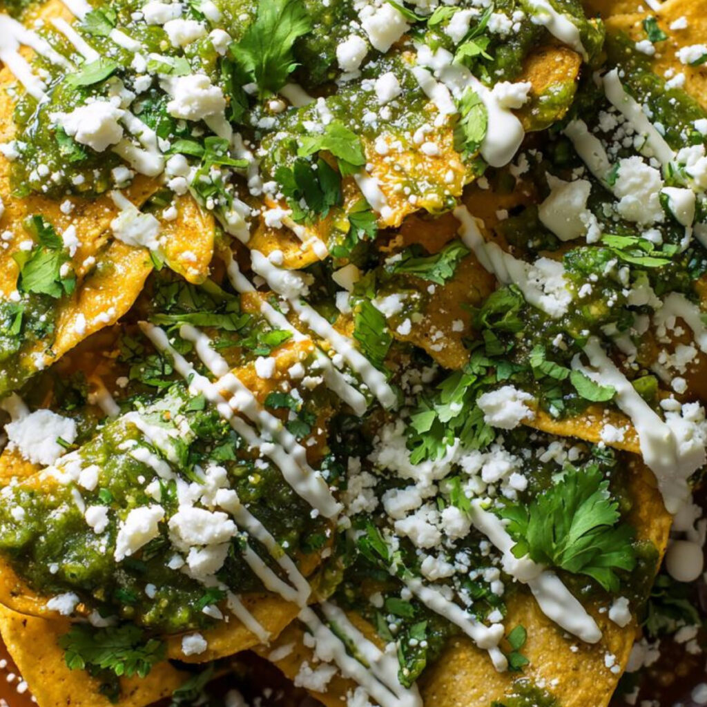 Crispy tortillas tossed in tangy salsa verde, topped with crema, cheese, and fresh cilantro—it’s Mexican breakfast at its best.