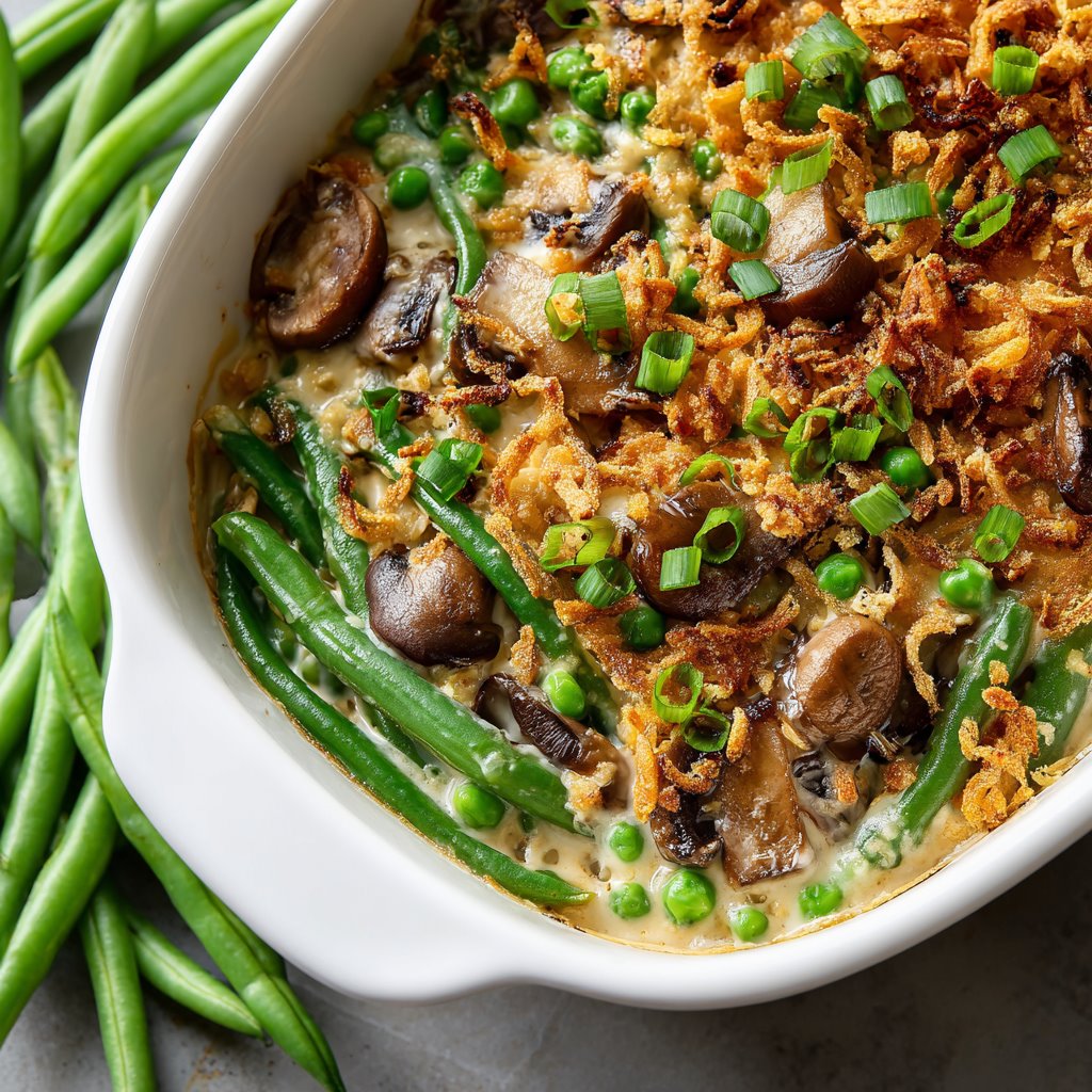 This Green Bean Casserole Cream of Mushroom combines tender green beans, a rich homemade mushroom sauce, and crispy fried onions for a timeless side dish that tastes like home.