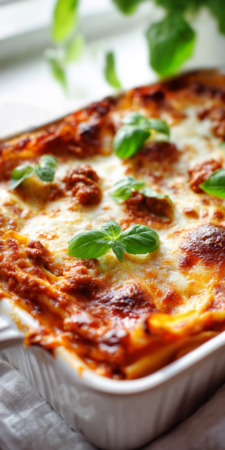 Rest the lasagna 10–15 minutes before slicing for clean servings.