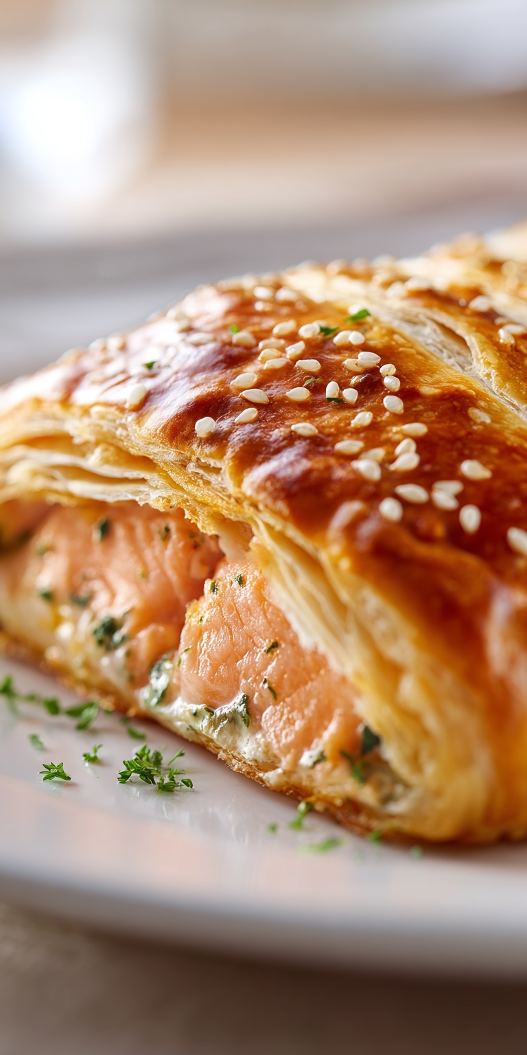 Salmon fillet is the star here, offering a rich, buttery texture that pairs perfectly with pastry.