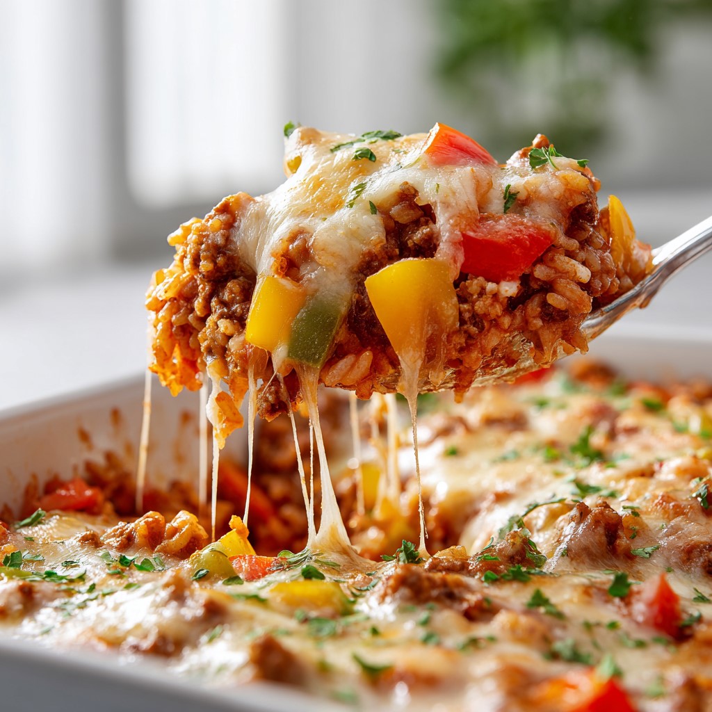 With savory meat, tender rice, and melted cheese, this dish delivers everything you love about stuffed peppers without the extra effort.
