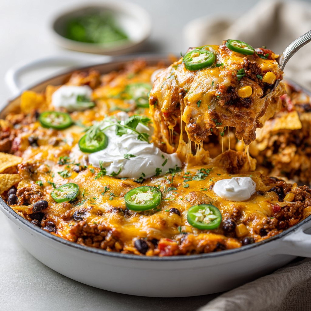 It combines seasoned beef, crunchy corn chips, and melty cheese into one easy, family-friendly dish.